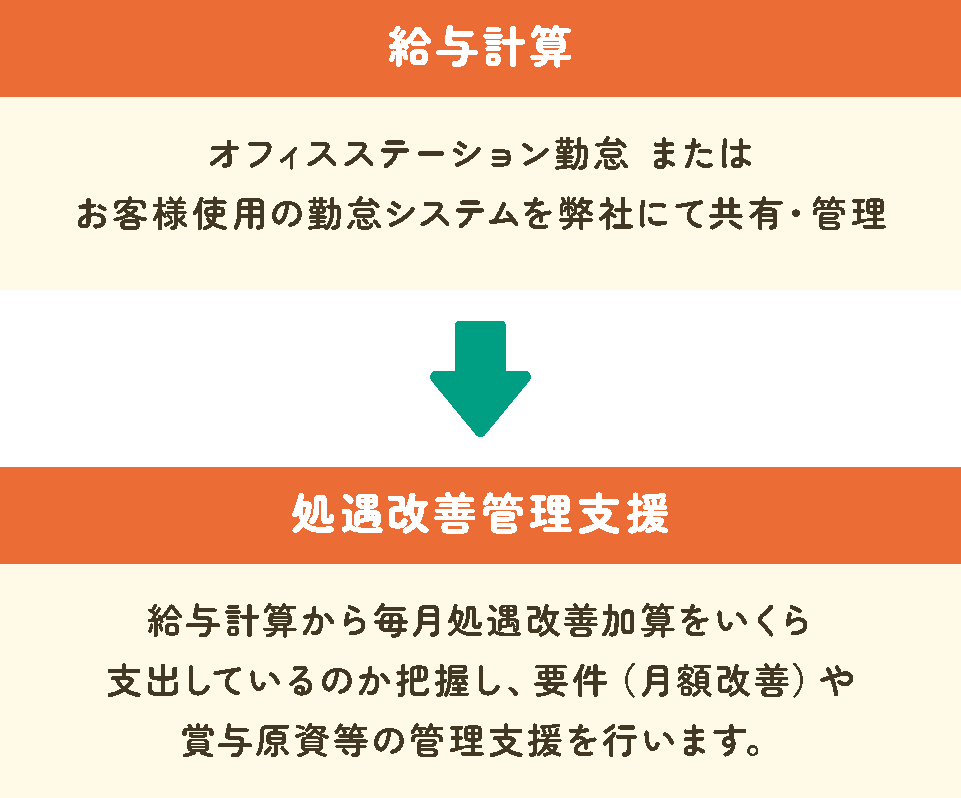 処遇改善加算だけでなく、各種加算の取得から要件チェックまで幅広くサポートいたします。